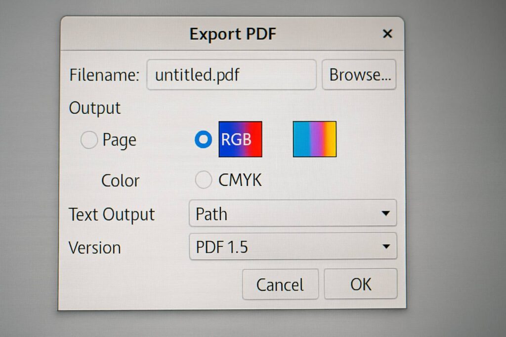 Inkscape bekerja di ruang warna RGB. Meski ada ekstensi CMYK, itu cuma simulasi. Kalau kamu desain untuk offset printing butuh akurasi warna 100%, mau tidak mau harus ekspor ke PDF lalu cek di Scribus (software layout open-source) atau… ya, Illustrator di rental komputer.